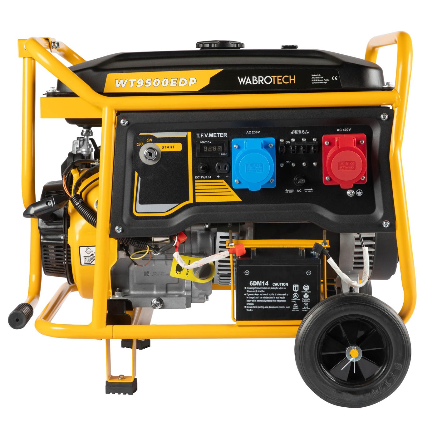 Agregat prądotwórczy WT9500EDP posiada wbudowany rozrusznik elektryczny oraz akumulator, dzięki tym elementom możemy uruchomić agregat jednym przekręceniem stacyjki. Urządzenie również posiada rozrusznik ręczny, który może zostać wykorzystany w trudnych warunkach.