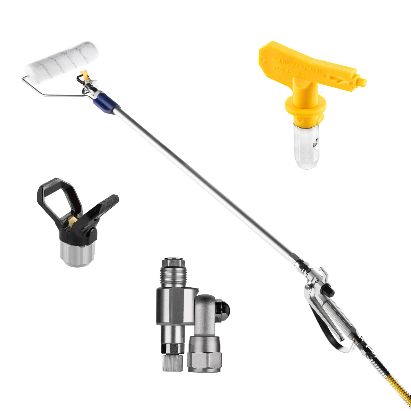 Nasz firmowy zestaw JetRoller składa się z wysokiej jakości wałka (system koszykowy), przedłużki, pistoletu malarskiego WT250 i dyszy 517 z osłoną 7/8”. Rozwiązanie to rekomendujemy specjalistom, poszukującym wytrzymałego i ergonomicznego rozwiązania do malowania dużych powierzchni i sufitów. Produkt jest kompatybilny z większością agregatów do natryskiwania bezpowietrznego, dostępnych na rynku.